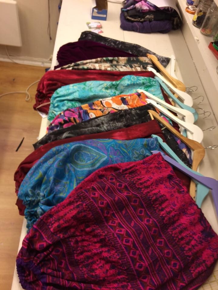 Vår flinke sømekspert har sydd vakre haremsbukser! Alle er unike og i behagelige, florlette, pustende materialer. Prisen er 3-400,- per stk. (Den nærmest kameraet er solgt) Ta kontakt med Anne Irene på anneirenekretz@yahoo.no