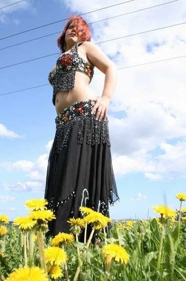 Vakker og meget pent brukt popdrakt fra Egypt. Drakten er veldig pent brukt, og har kun hatt en eier. Den er rikt dekorert med perler og paljetter, og det følger med hårbånd, en mansjett og ett band som går rundt magen som festes foran. Strl 38-42, meget elastisk, kontakt for å prøve.