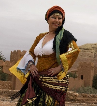 Men hva har man på seg? Det kan være vanskelig å vite om du er ny til magedans. Du kan egentlig ha på deg stort sett det du selv ønsker. Kom i treningstøy om du vil! Eller du kan kjøpe en treningsdrakt som denne dressen her, eller denne to-delte saken her. Du må ikke blotte magen om det er ukomfortabelt, men du kan om du vil. Det er lurt å ha relativt tettsittende bukse/tights, så det er lett å se om fot- og knestilling er riktig. Gjerne også litt ettersittende topp, men det er viktig at du er komfortabel.
